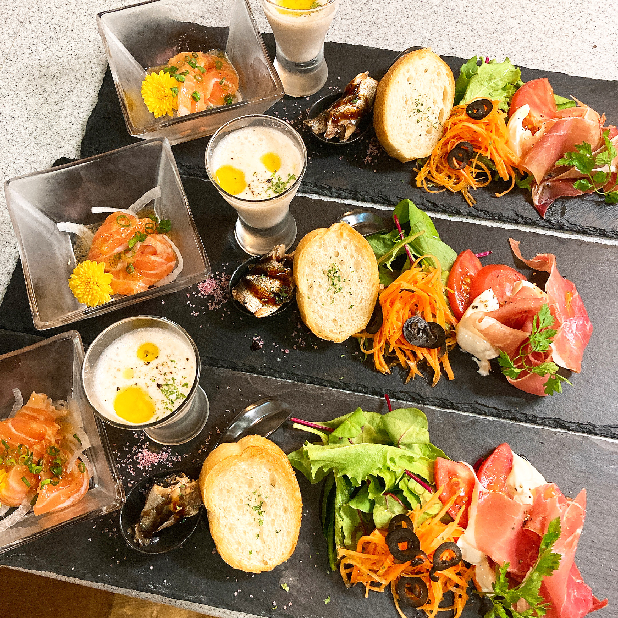 和の感性とイタリアンの技法を融合させた、フォトジェニックな大皿料理が並びます。