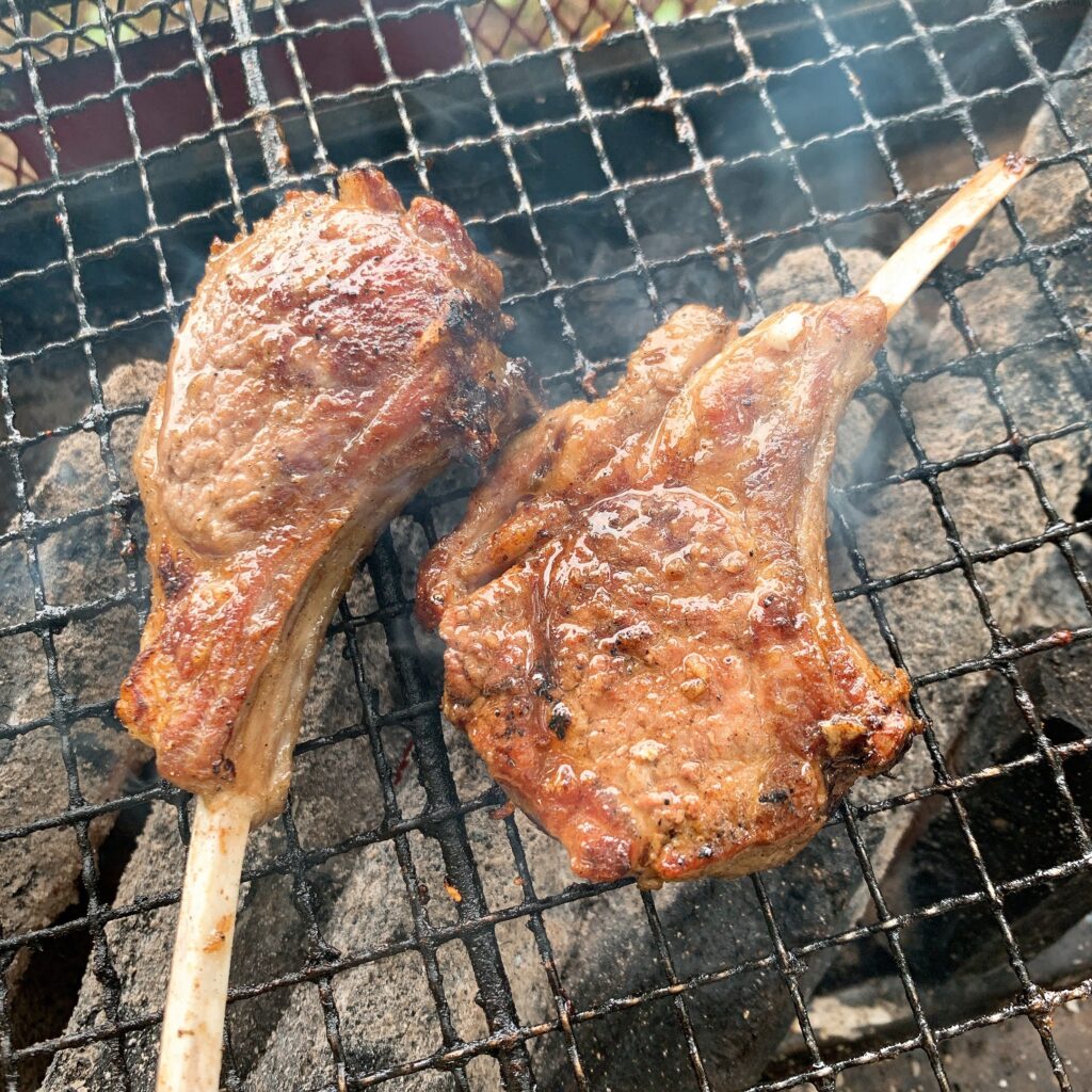 ​プロのシェフが焼くからこそ味わえる、ジューシーな塊肉や旬の野菜。野外での食体験をワンランク上に。