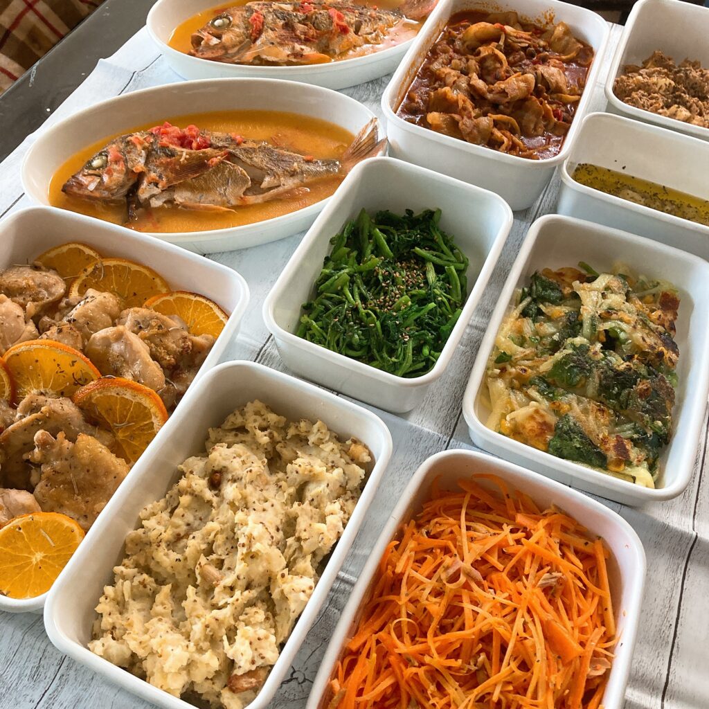 • 内容例: ​3時間で12品前後(約4名様分)の作り置きを致します。
